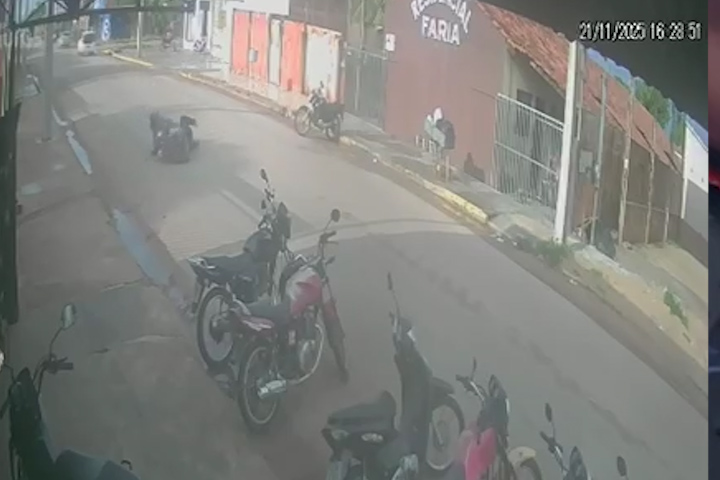 Tá na Net: Motoqueiro perde a direção e bate em 6 motos estacionadas em Cáceres.